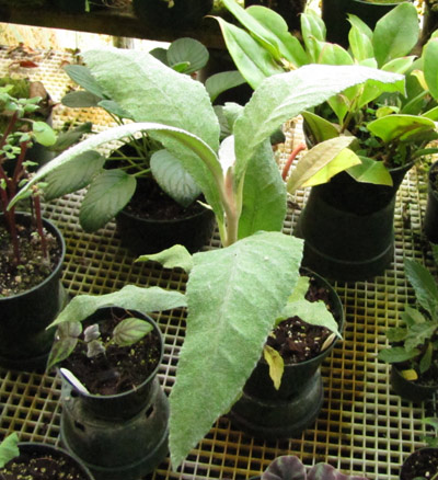 Looks like Rhytidophyllum leucomallon to me. A plant with great sandpapery leaf texture, but not easy to keep alive. |